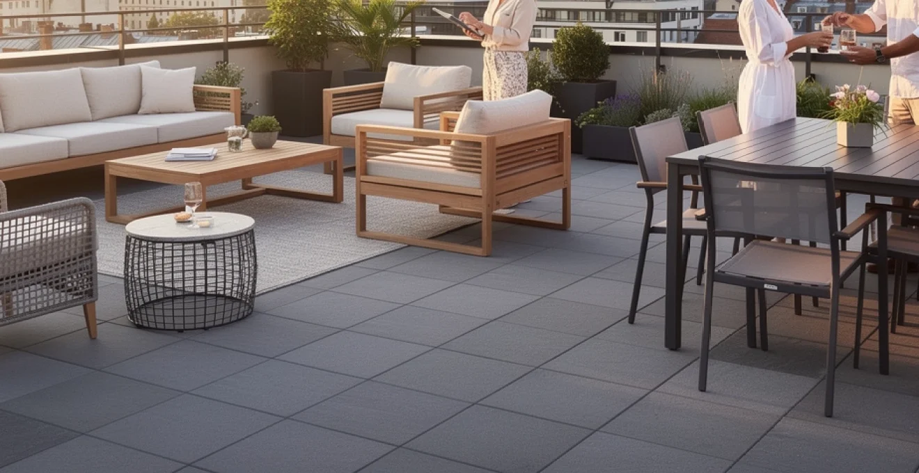 Enfin, pour les terrasses orientées « réception », la modularité et la circulation priment. Des banquettes d’angle, des poufs légers et des tables gigognes permettent de multiplier les assises sans encombrer visuellement. Vous pouvez réorganiser l’espace selon le nombre d’invités et le type de réception, du simple apéritif au buffet dînatoire. Dans ce cas, la résistance des matériaux et la facilité d’entretien deviennent des critères majeurs, car le mobilier sera sollicité fréquemment.